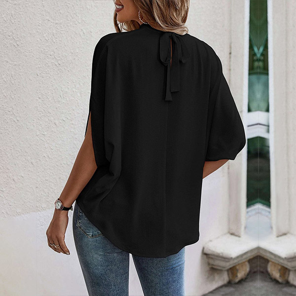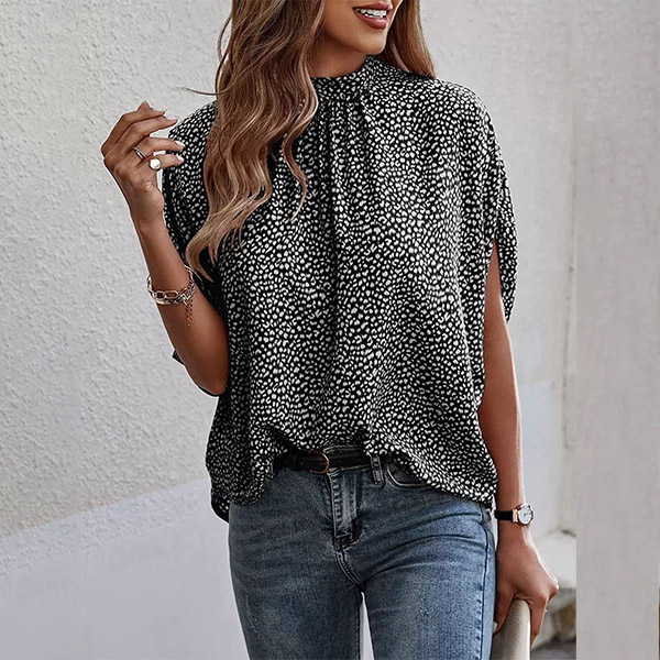 This shirt features a trendy leopard print design, adding a touch of edginess and fierceness to the shirt. The self-tie mock-neck design is unique and adds a touch of sophistication to the shirt. The batwing sleeves provide a relaxed and comfortable fit, while still allowing for movement and breathability. Wanna have a try?
