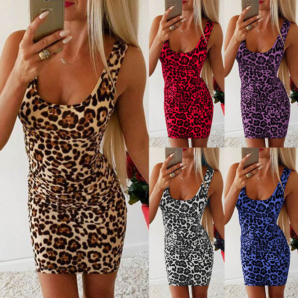 Som alla vet symboliserar leopardelementet femininitet. Varför inte uttrycka din charmiga feminina dragningskraft med denna leopardmönstrade klänning? Med ärmlös design, rund hals och en snäv siluett, framhäver detta plagg din smala figur. Klä dig i denna fantastiska klänning och uttryck din skönhet och charm.