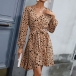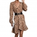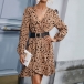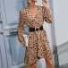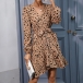 Damklänning med leopardmönster, V-ringad och långärmad – knyt i midjan