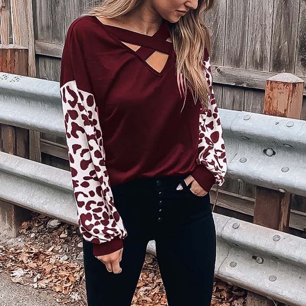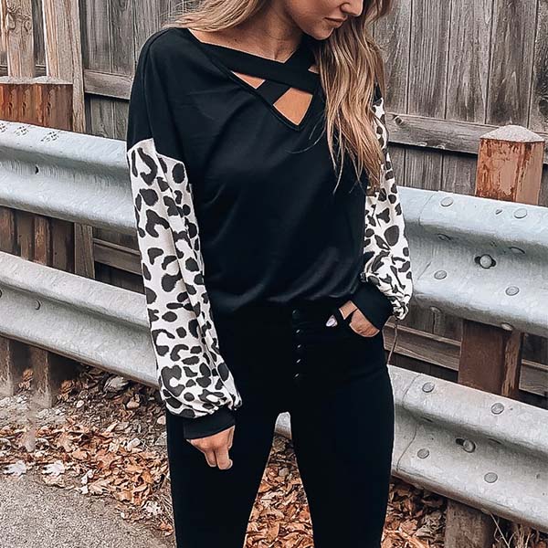 Hey,girls,it is a good chance to update your daily style with the help of this wonderful top. The leopard spliced lantern sleeve and crossover v-neck design make this piece look so distinctive and attractive. Invite it to your wardrobe to enrich it.