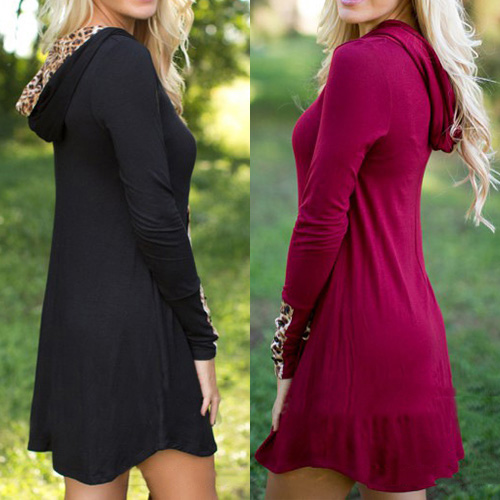 Fashion Leopard Spliced Long Sleeve Hooded Dress