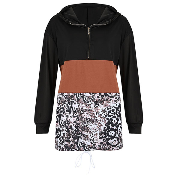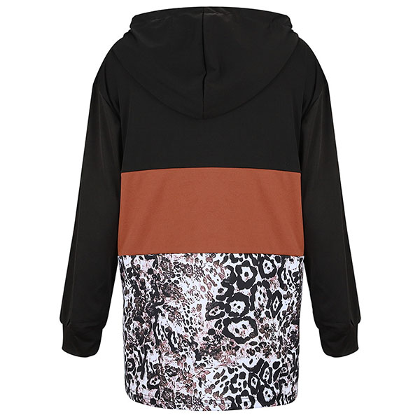 In these autumn days,this cozy yet stylish sweatshirt is a good choice. Contrast color element and leopard spliced details make this piece look so eye-catching. Finished with long sleeve,hooded silhouette and drawstring hem,this little piece can maintain you a casual and relaxed style.