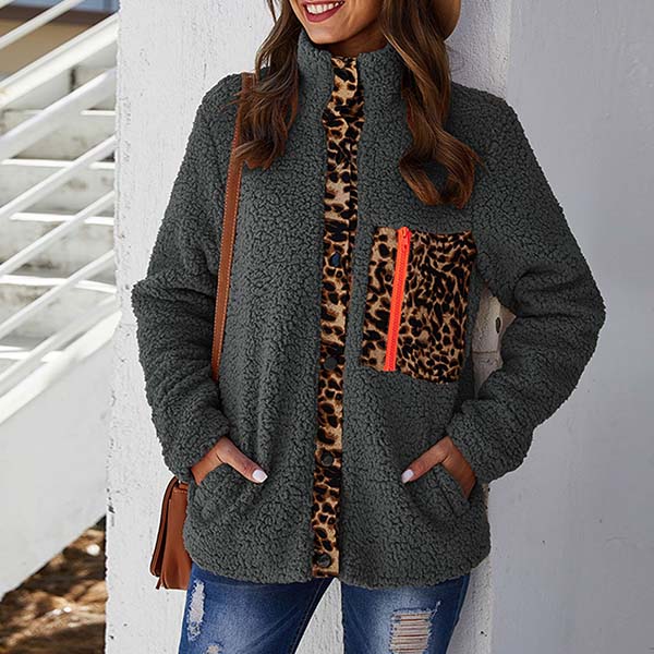 Thanks to the soft and cozy plush fabric,you can have a warm and comfortable day in this coat. What's more,the leopard spliced details will make this piece look more eye-catching and attractive. Cozy yet stylish,this piece is worth to be your new darling in these col days.