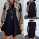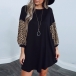 Fashion Leopard Spliced Long Sleeve Round Neck Loose Dress(It runs big)
