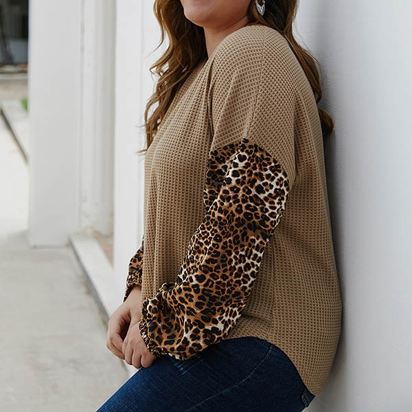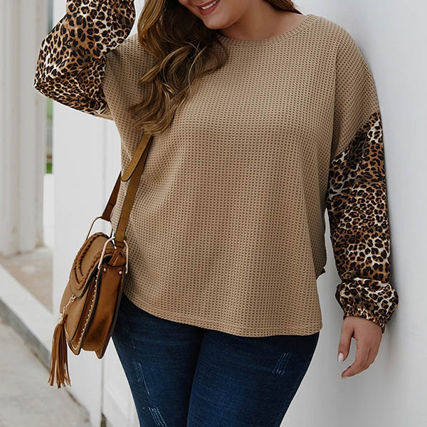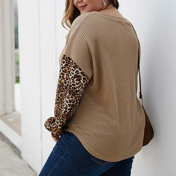 What makes this knit top look so chic and attractive?We think it owes to the leopard spliced design at the