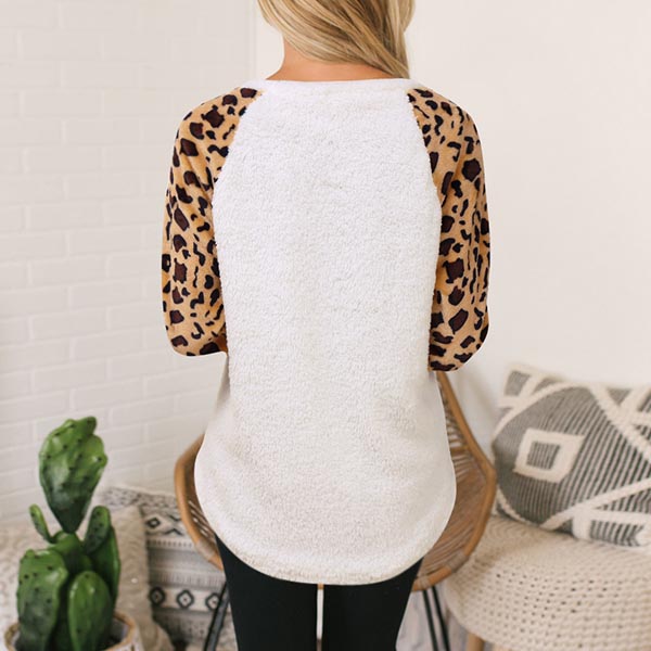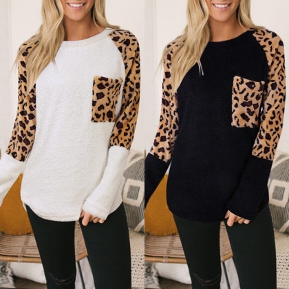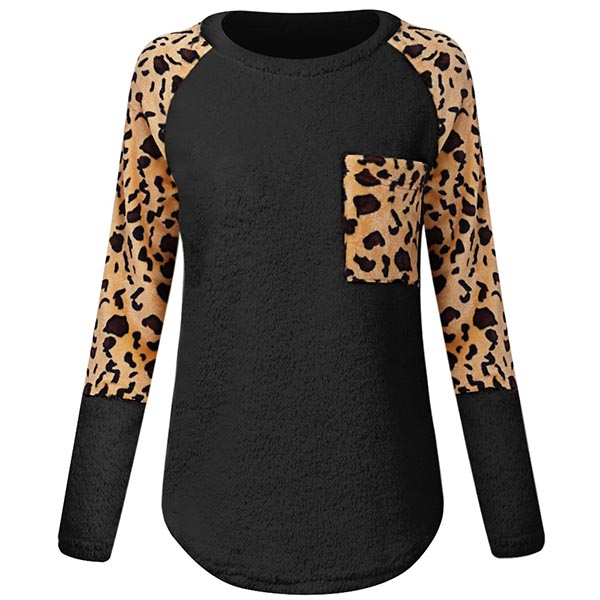 For these cold days,this plush top will strike your mind. The leopard printed spliced design will make this piece look more eye-catching and attractive.while the soft and cozy plush fabric can ensure you a warm and comfortable day. You can match it with your tight pants to enjoy these autumn days.