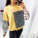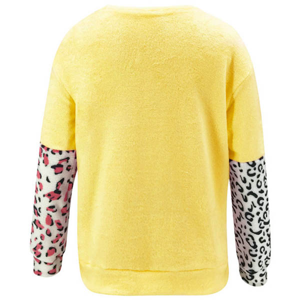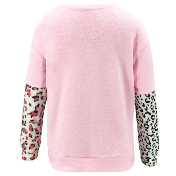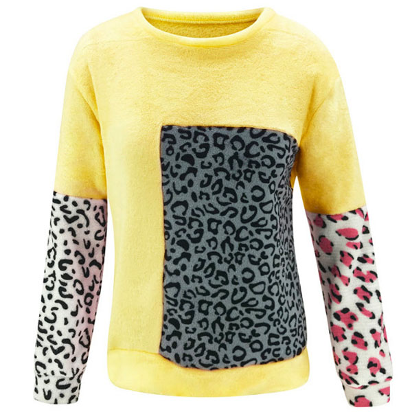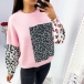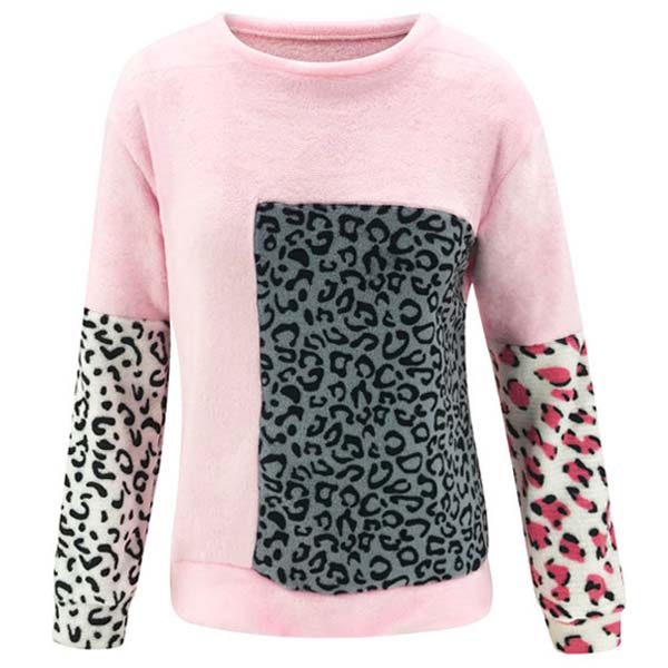 Fashion Leopard Spliced Long Sleeve Round Neck Top
