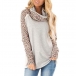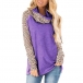 Fashion Leopard Spliced Long Sleeve Scarf Collar T-shirt