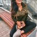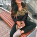 Fashion Leopard Spliced Long Sleeve Stand Collar Plush Sweatshirt
