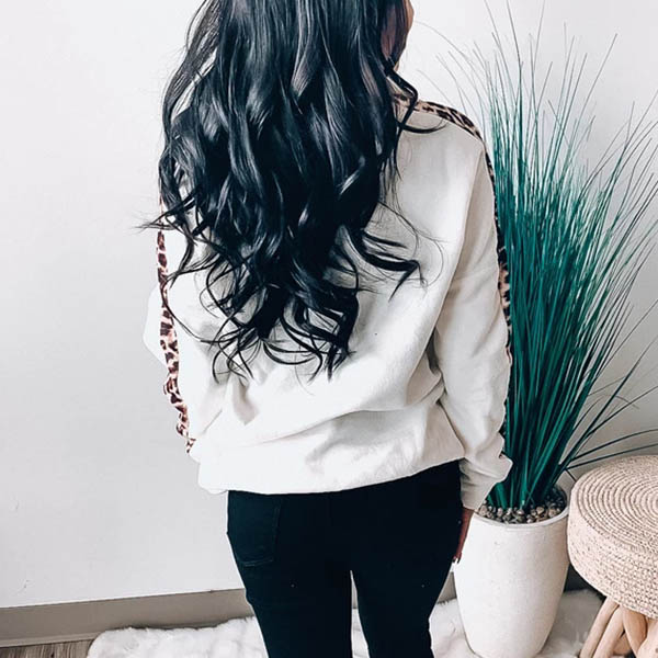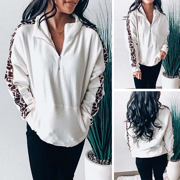 As for a casual and relaxed autumn look,sweatshirt is a good choice. So we suggest you this piece. The stand collar and leopard spliced details enrich the design style,while its soft and breathable fabric can ensure you a comfortable day. You can match with a jeans to enjoy your wonderful day.
