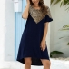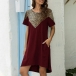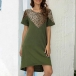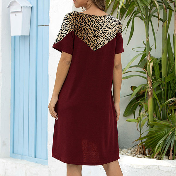 Fashion Leopard Spliced Short Sleeve Round Neck Dress