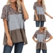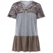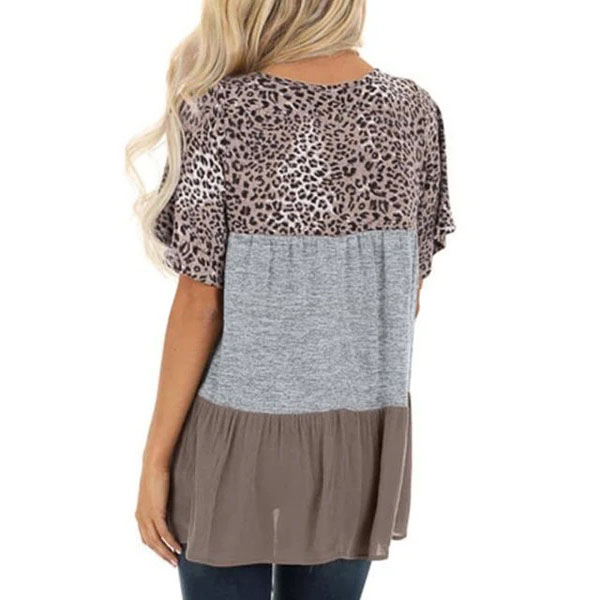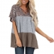 Fashion Leopard Spliced Short Sleeve V-neck Contrast Color Top