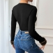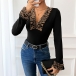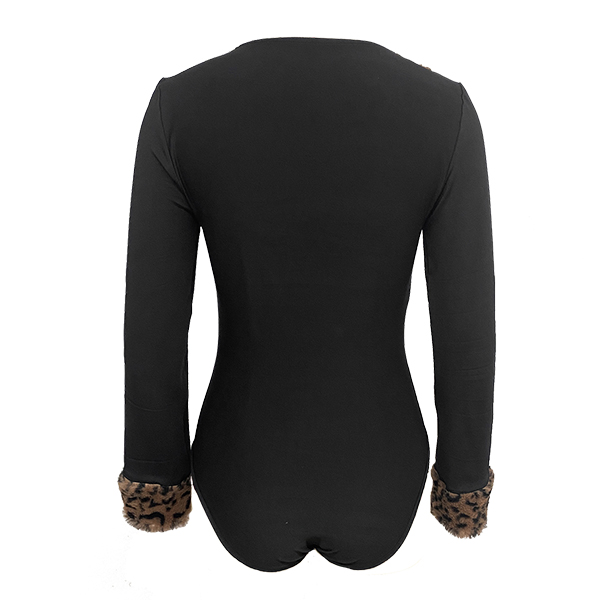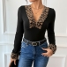 Denna djärva bodysuit har ett slående leopardmönster längs den smickrande V-ringningen och på manschetterna, vilket ger en moderiktig och elegant look. Kombinera med högmidjade byxor och klackar för en sofistikerad och iögonfallande stil.