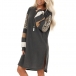 Fashion Leopard Striped Spliced Long Sleeve Slit Hem Dress