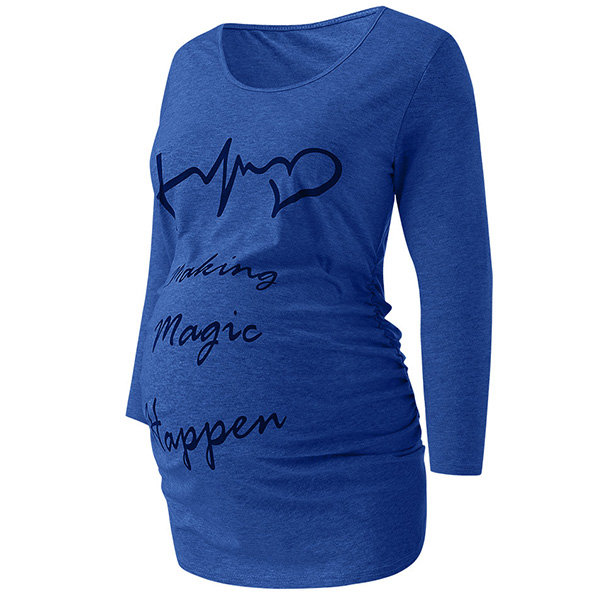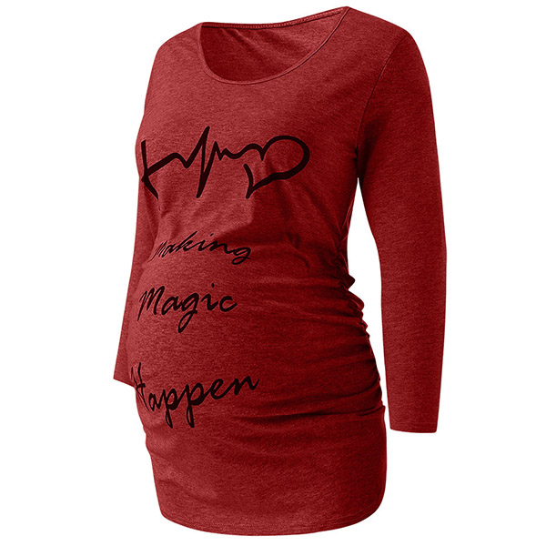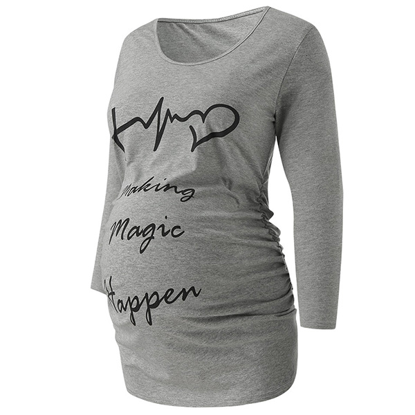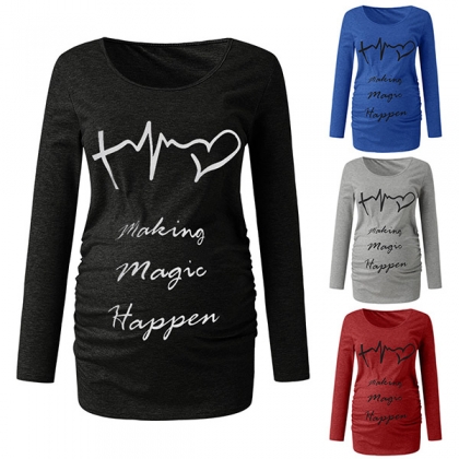 Fashion Letters Printed Long Sleeve Round Neck Maternity T-shirt