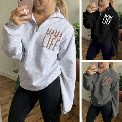 Fashion Letters Printed Long Sleeve Stand Collar Sweatshirt