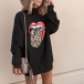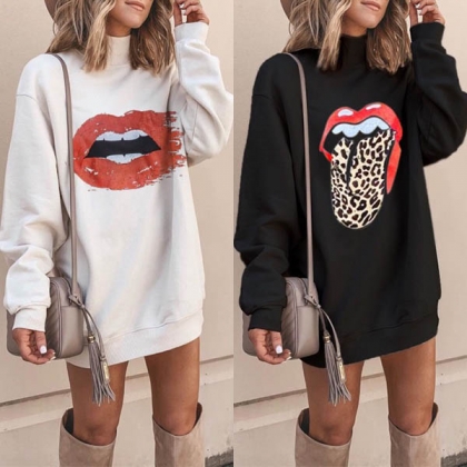 Fashion Lip Printed Long Sleeve Mock Neck Sweatshirt Dress