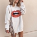 In these autumn days,your wardrobe calls for such a chic and stylish sweatshirt dress! It is crafted from soft and breathable fabric,with long sleeve and mock neck design,this piece can ensure you a long-lasting comfort,while the lip printed pattern design will lend you a dash of cute and playful vibes. Try to match with your favourite shoes for a stylish autumn look!