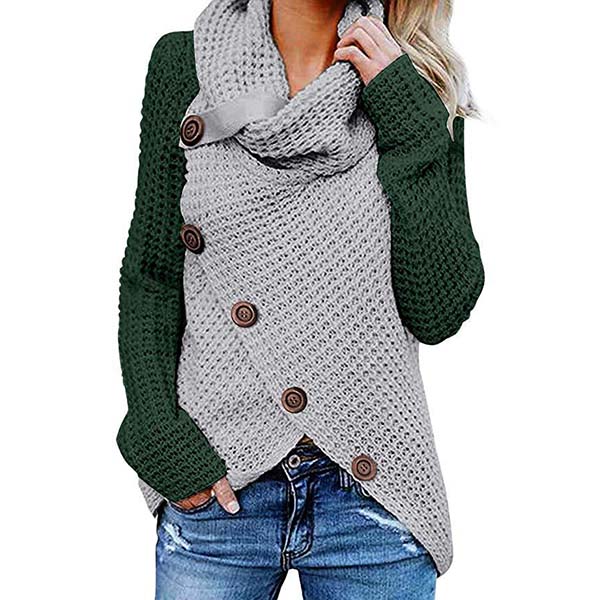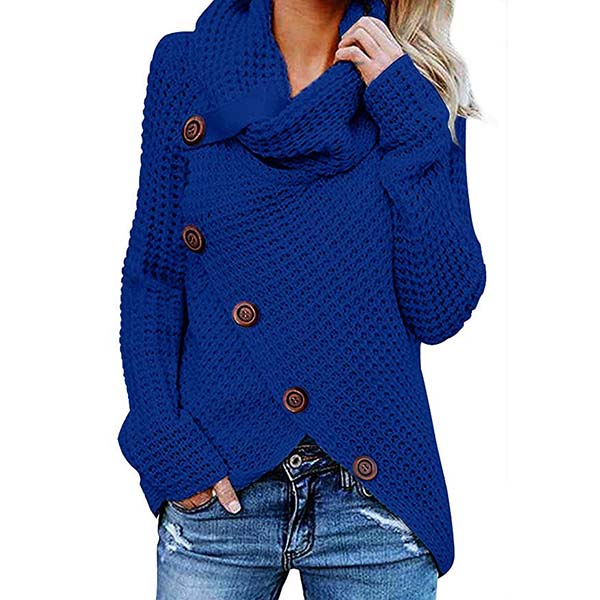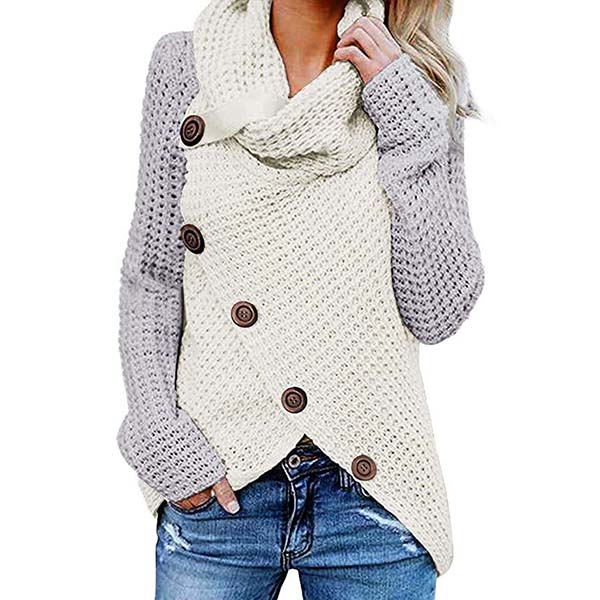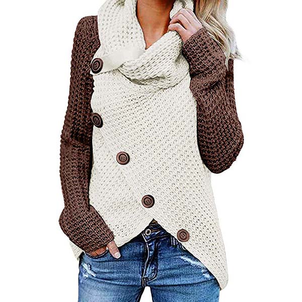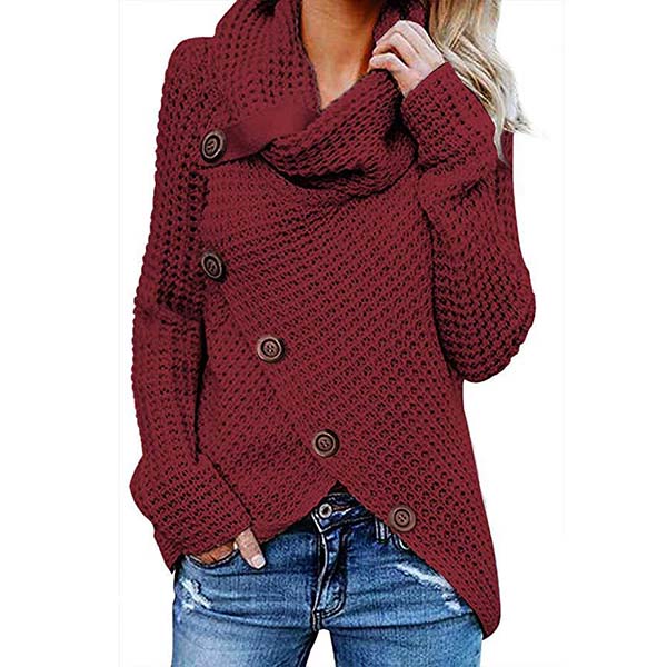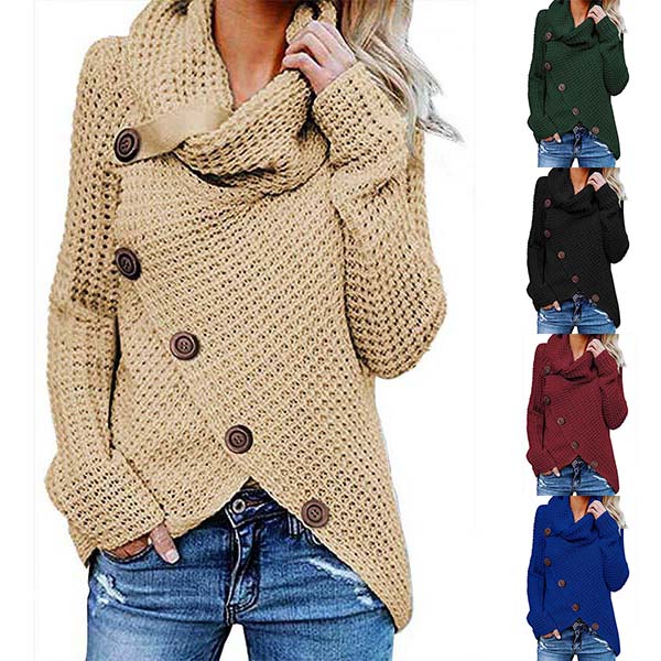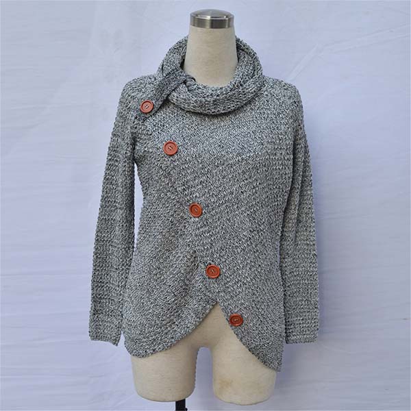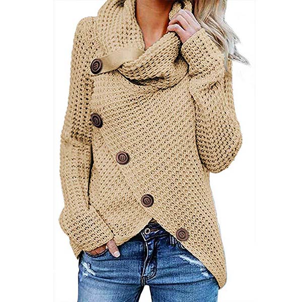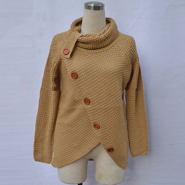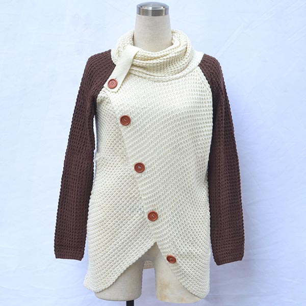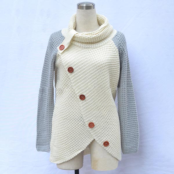 At your first sight,you may be attracted by this sweater thanks to its chic and unique design style. Its distinctive design details like cowl neck,front buttons and irregular hem make this piece so attractive. Not only can keep you warm,but also can exude your personality,this wonderful piece is a wise investment.
