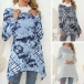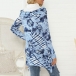 Fashion Long Sleeve Cowl Neck Irregular Hem Printed Top