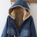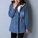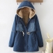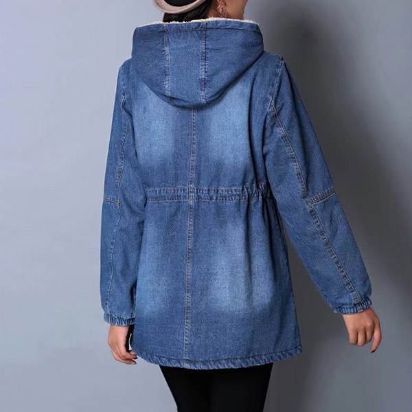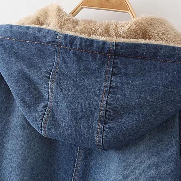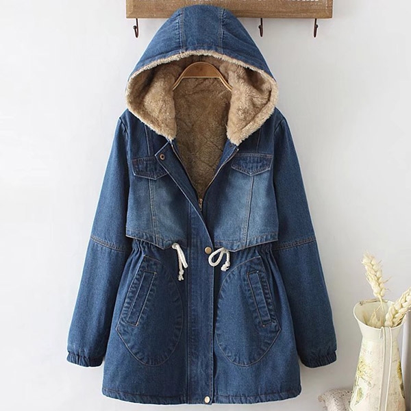 When the cold season hits,you can just slip into this denim coat to keep warm. The hooded