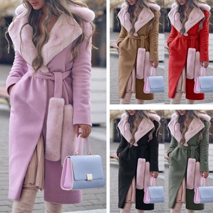 Även under dessa kalla dagar kan du behålla din eleganta och charmiga stil samtidigt som du håller dig varm med vår yllerock. Fuskpälskragen och midjeremsdesignen är de främsta höjdpunkterna som gör denna kappa så distinkt och attraktiv. Omfamna de kyliga dagarna med denna underbara kappa!