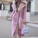 Trendig yllerock med långärmad fuskpälskrage och midjerem
