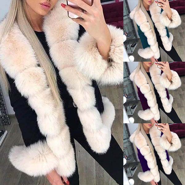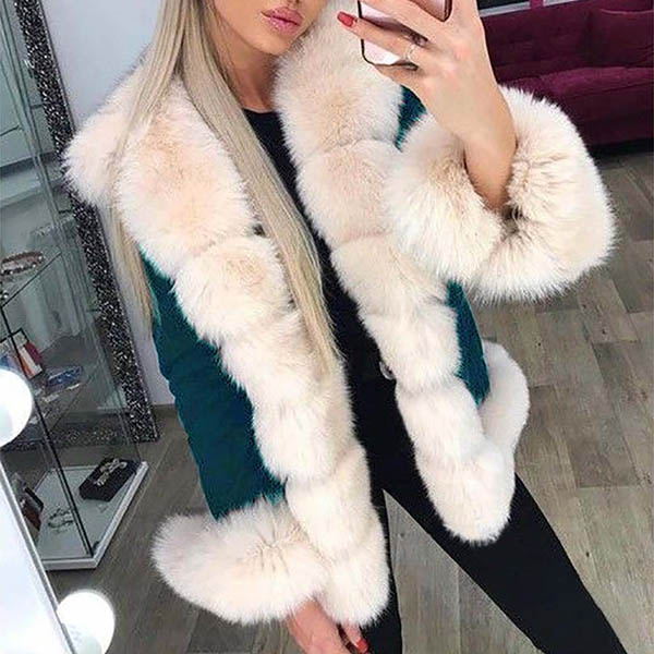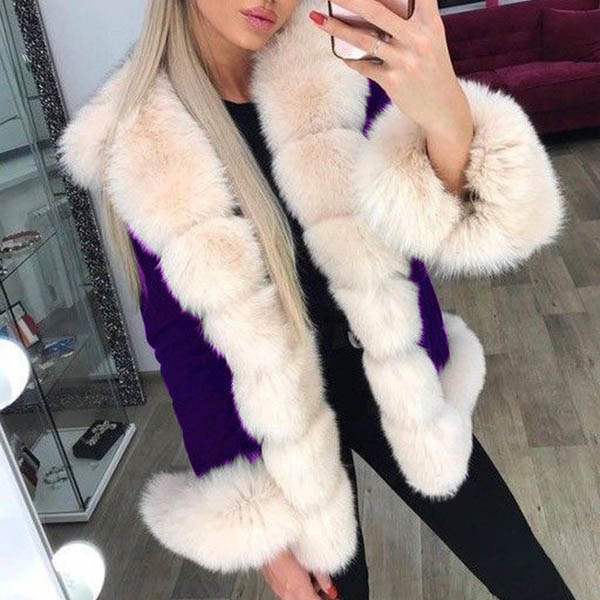 Fashion Long Sleeve Faux Fur Spliced Collar Coat