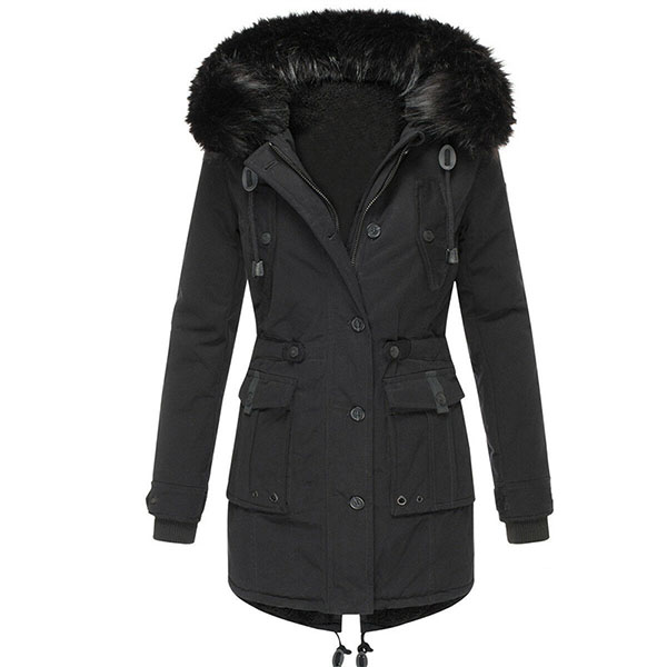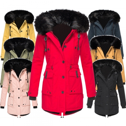 Embrace the cold days with this padded coat! It boasts a solid color,the faux fur spliced hooded silhouette and plush lining design can ensure you a warm and comfortable day. And the big pockets design makes it more convenient and practical. It is worth to be your new darling in these cold days.