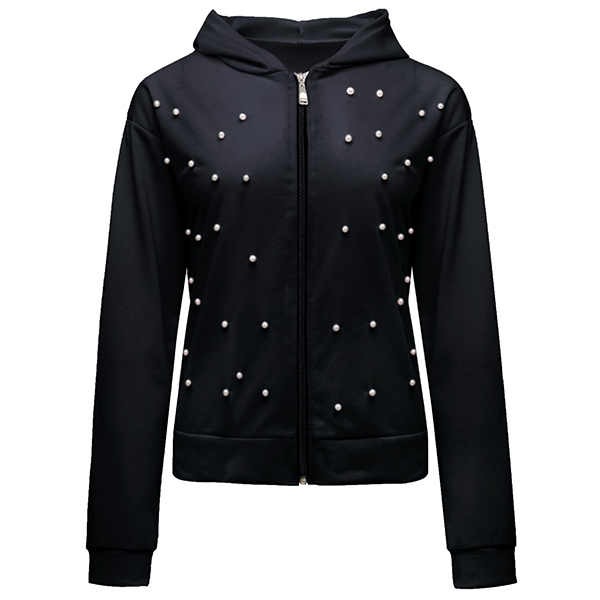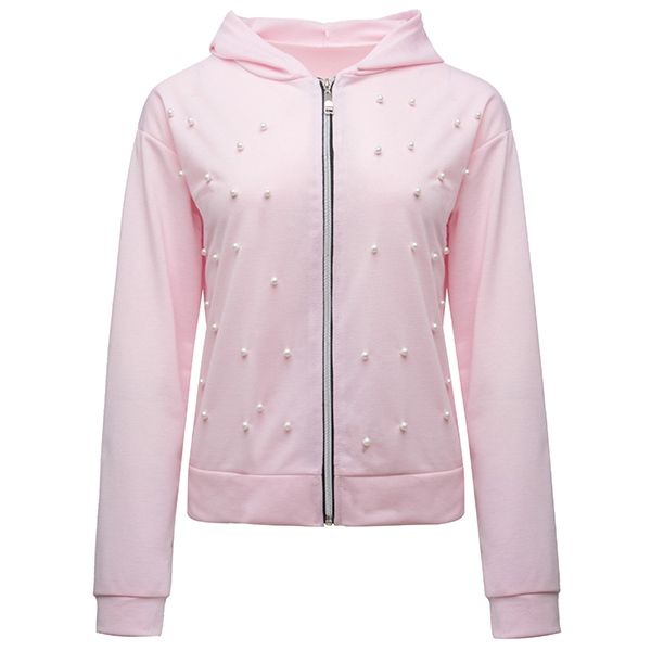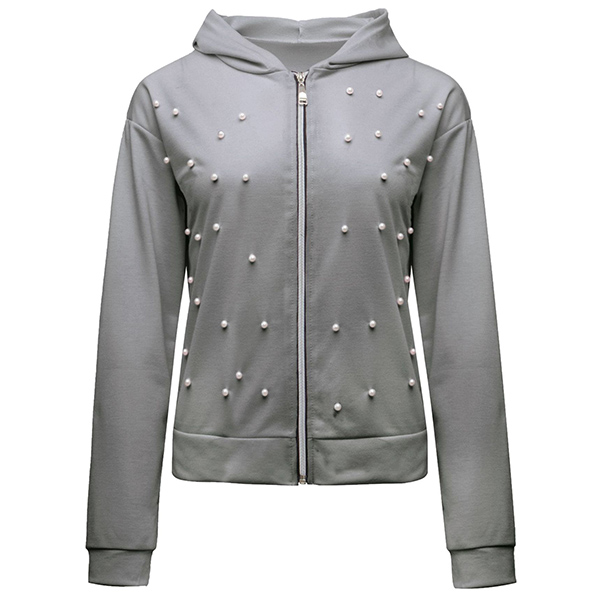 Fashion Long Sleeve Hooded Beaded Sweatshirt Coat