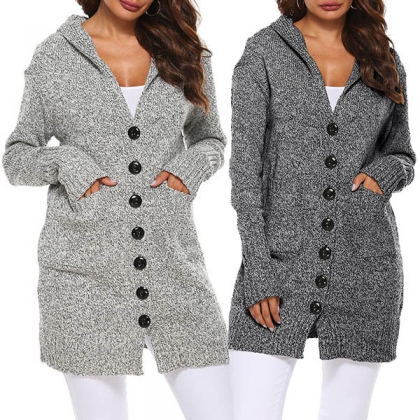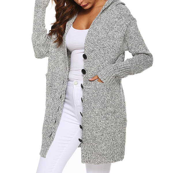 Fashion Long Sleeve Hooded Single-breasted Knit Cardigan