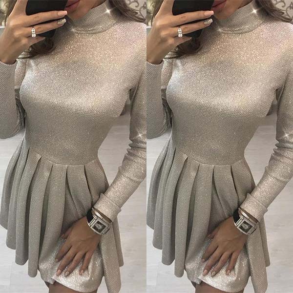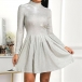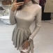 Fashion Long Sleeve Mock Neck High Waist Dress