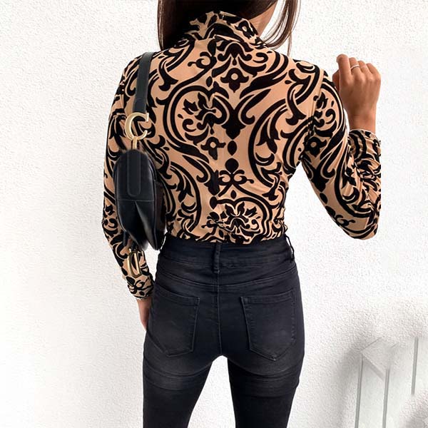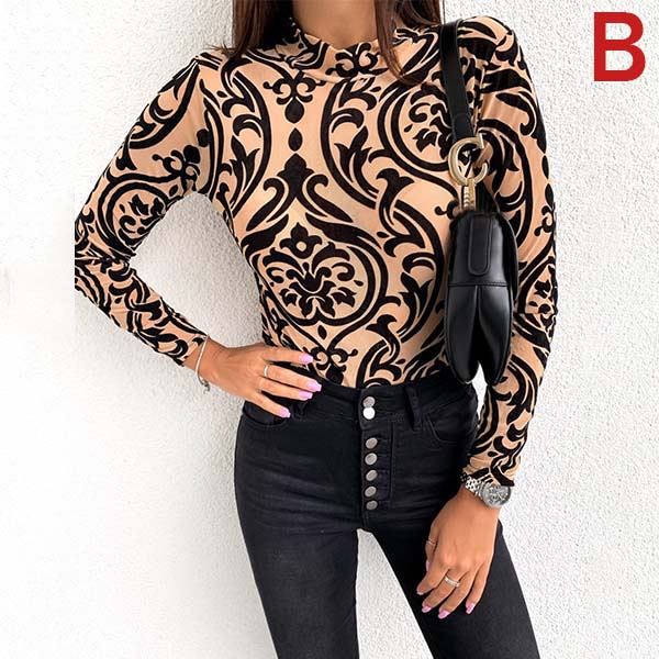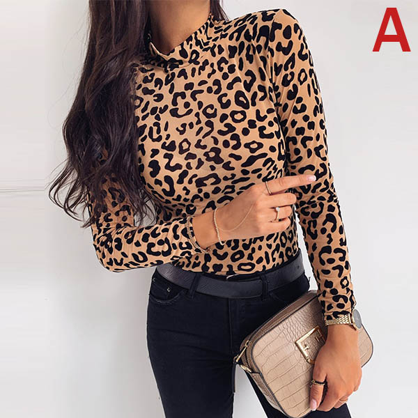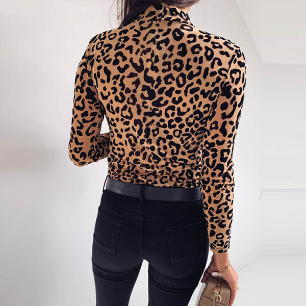 It is a good chance to enrich your wardrobe by adding this t-shirt. The leopard printed details make this piece look so eye-catching yet feminine. Finished with long sleeve and mock neck design,this t-shirt can ensure you a comfortable day with its soft and comfortable fabric. When the days get breezy,this long sleeve t-shirt is a good choice.