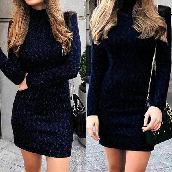 This comforting dress offers the perfect transitional layer from the hot days to cold days. The long sleeve and mock neck design can keep you warm and comfy,while its fit silhouette design will showcase your slender figure. You can wear it alone in the spring and autumn days,or match with your overcoats in the chilly winter days.