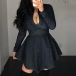 Fashion Long Sleeve POLO Collar Bow-knot High Waist Denim Dress