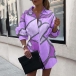 Fashion Long Sleeve POLO Collar Chain Printed Shirt Dress