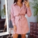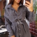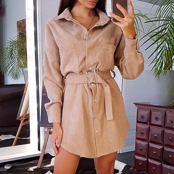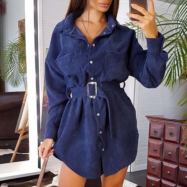 Fashion Long Sleeve POLO Collar Shirt dress with Waist Strap