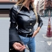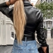 Mode Enkelknäppt långärmad PU-läderskjorta med POLO-krage