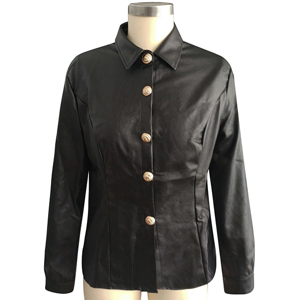 Du får en cool och fashionabel daglig look när du bär denna skjorta i PU-läder. Långa ärmar, en POLO-krage och en enkelknäppt design ger en klassisk stil. Uppdatera din stil med denna bit.