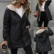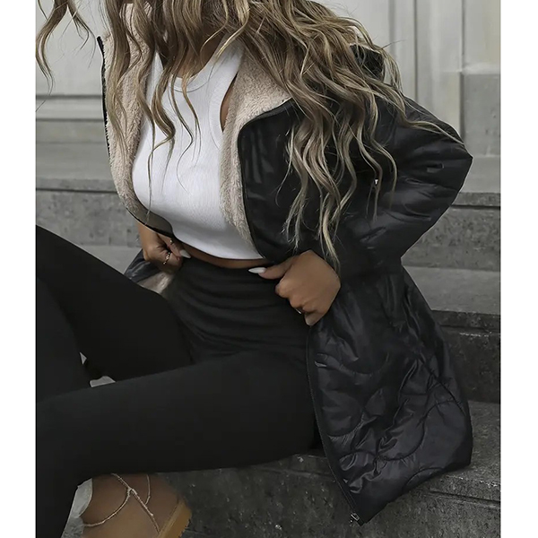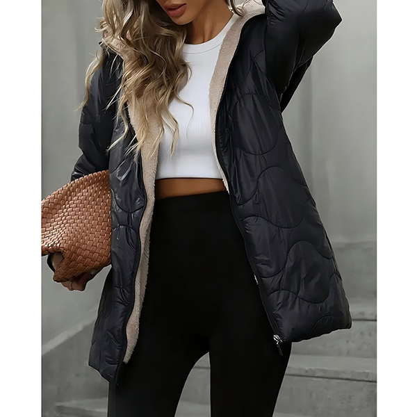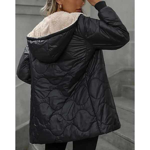 Quiltad kappa med plyschfoder och huva, trendig långärmad modell