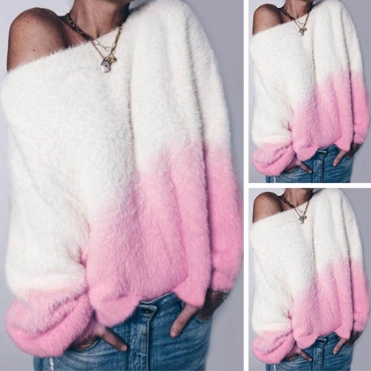Crafted from soft and cozy plush fabric,with long sleeve and round neck design,this top is sure to give you a warm and comfortable day. Moreover,the color gradient design will make this piece look more attractive. You can simply matching with your jeans to greet the arrival of the autumn days.