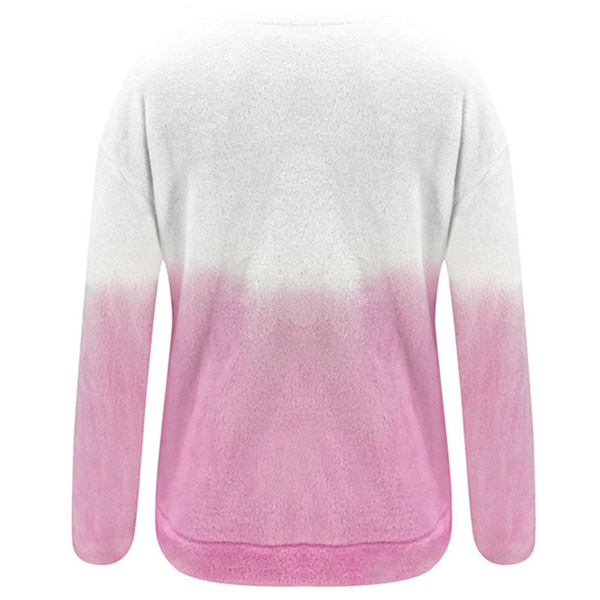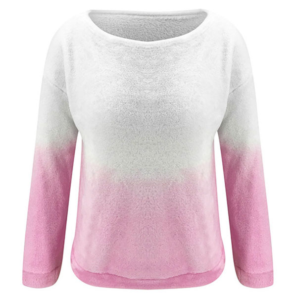 Fashion Long Sleeve Round Neck Color Gradient Plush Top