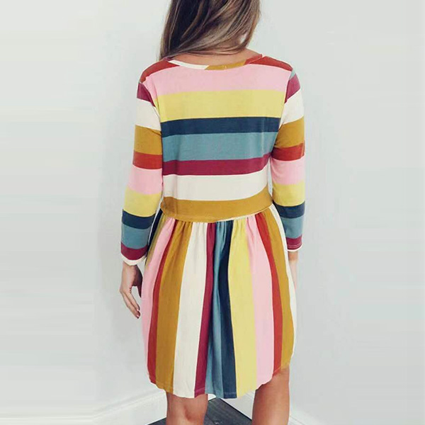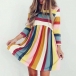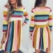 Fashion Long Sleeve Round Neck Colorful Striped Dress