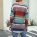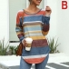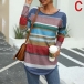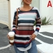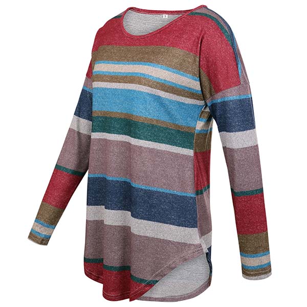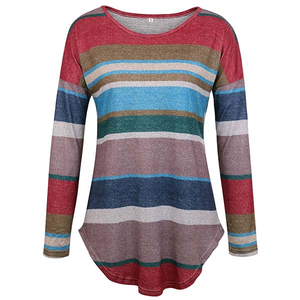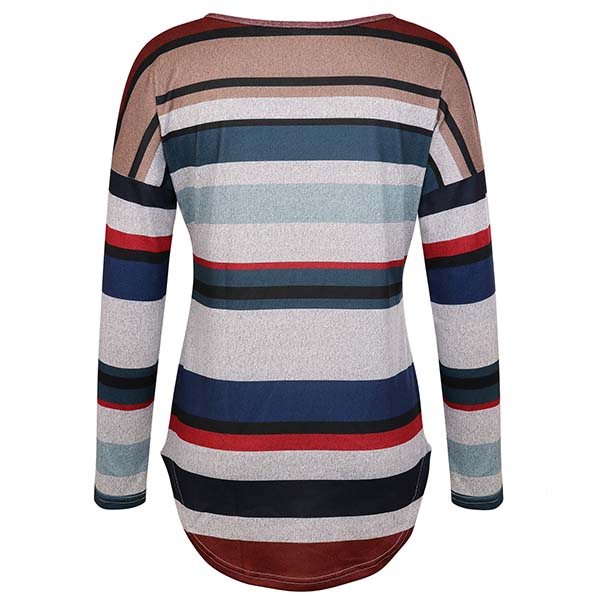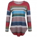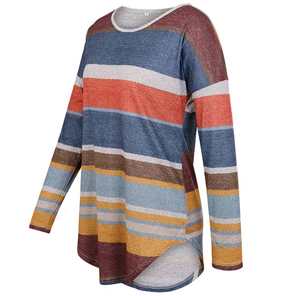 Fashion Long Sleeve Round Neck Colorful Striped T-shirt