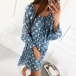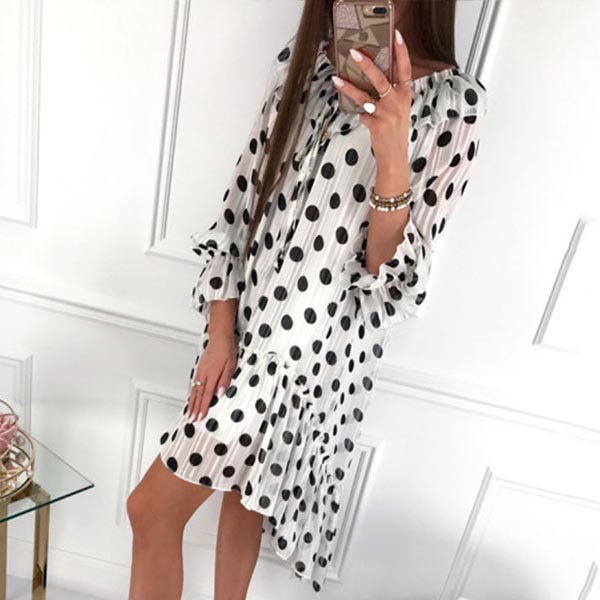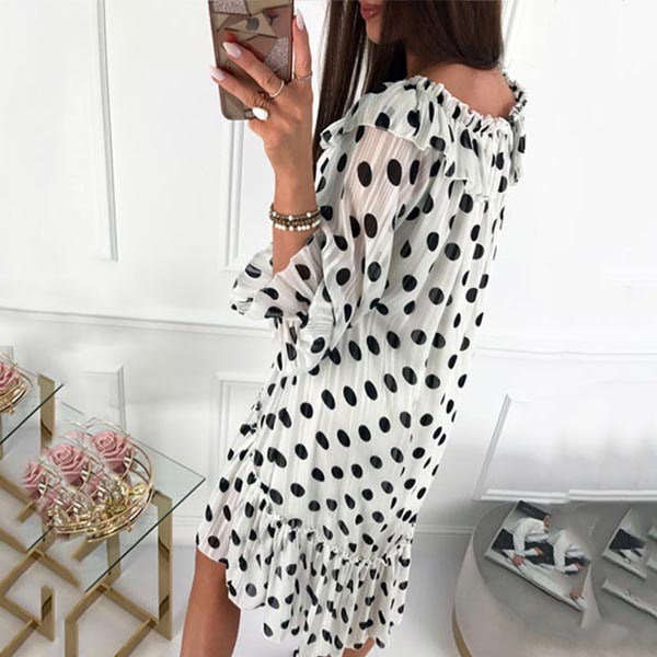Fashion Long Sleeve Round Neck Dots Printed Ruffle Dress