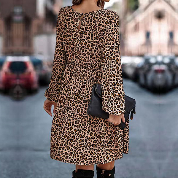 När höstsäsongen slår till kan den här sweatshirtklänningen lätt slå dig.Leoparden tryckt detaljer gör att det ser så iögonfallande ut.Tillverkad av mjukt och andningsbart tyg, med långa ärmar och design med rund hals, det här stycket kan få dig att se enkelt charmig och vacker ut genom att samarbeta Med dina over-the-knee stövlar.