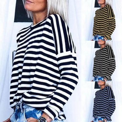 This striped t-shirt makes us fall in love with this style thanks to the effortless yet statement-making look it offers to us. Crafted from soft and breathable fabric,with long sleeve,round neck and a loose silhouette,this piece can promise you a comfortable day. You can simply matching with your jeans to have a wonderful day.