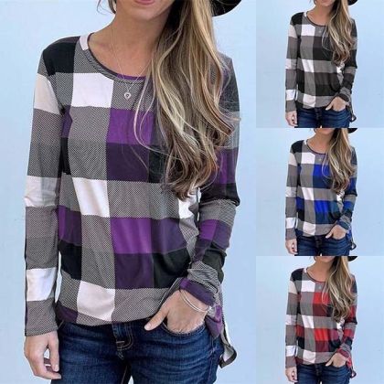 Som vi alla vet kommer rutiga element aldrig att gå ur mode. Så varför inte intressera dig för denna rutiga t-shirt? Den har långärmad och rund halsdesign, och det mjuka, andningsbara tyget kan ge dig en bekväm dag. Perfekt passform för dina vardagar.