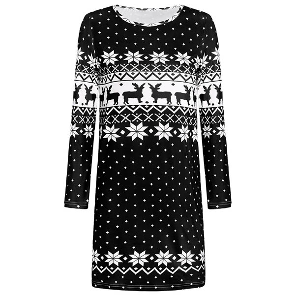 For the coming Christmas Day,you can choose this dress to arouse more attention. It is finished with long sleeve,round neck and chic printed details,this piece not only can give you a comfortable day,but also can exude your fashion personality.