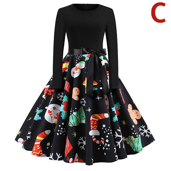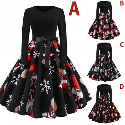 Du behöver inte oroa dig för vad du ska ha på dig den kommande juldagen om du har den här klänningen i ditt team. Den är färdig med långärmad och rund halsdesign, den tryckta fålldesignen är höjdpunkten, som inte bara kan öka sin charm, utan också kan lägga till lite festivalatmosfär. Så varför inte köpa en för att förbereda dig inför julfesten?